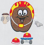 My new set of embroidery designs that is in the works, Funny Coffee Beans, is such a fun group of designs for those who love anything coffee! These designs can be used on towels, aprons, covers for small kitchen appliances, napkins, a quilted wall hanging or anything else that suits your fancy! Below is one of the latest designs that I've completed so far.